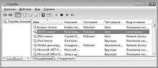 Рис. 1.14. Строка службы в оснастке Службы