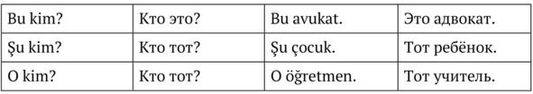 Множественная форма: Bunlar kim? Bunlar çocuk (lar) (Окончание мн. числа выражается аффиксом -lar / ler, здесь мы прибавляем данный аффикс к указательному местоимению. Мн. число существительных подробнее разберём в Главе 3).