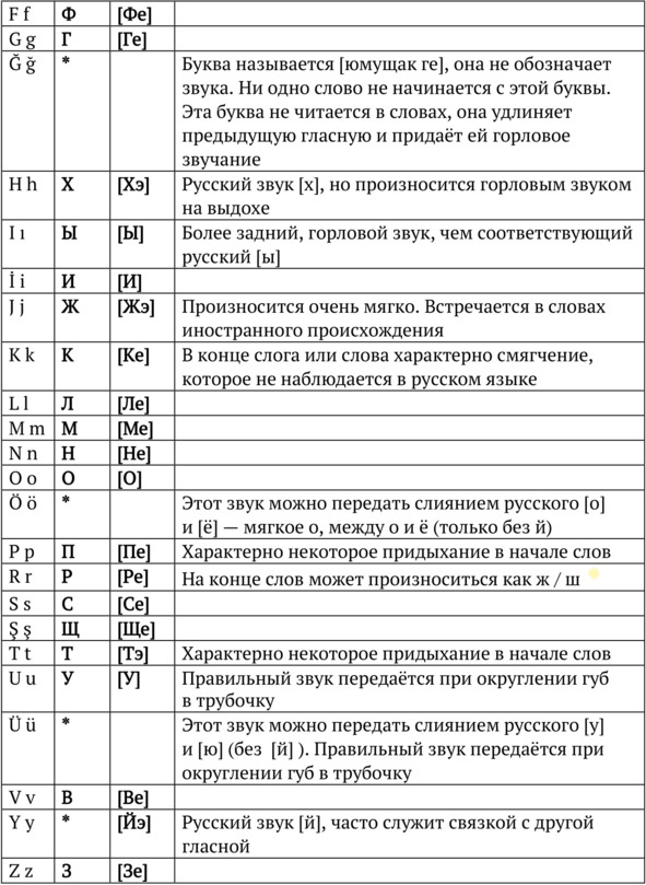 Согласными являются – b, c, ç, d, f, g, ğ, h, j, k, l, m, n, p, r, s,