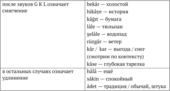1. В конце слова или перед согласной буквой – удлиняет впереди стоящую твёрдую гласную букву.