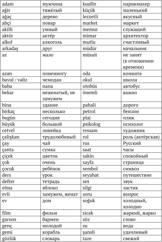 Переведите с русского на турецкий язык.