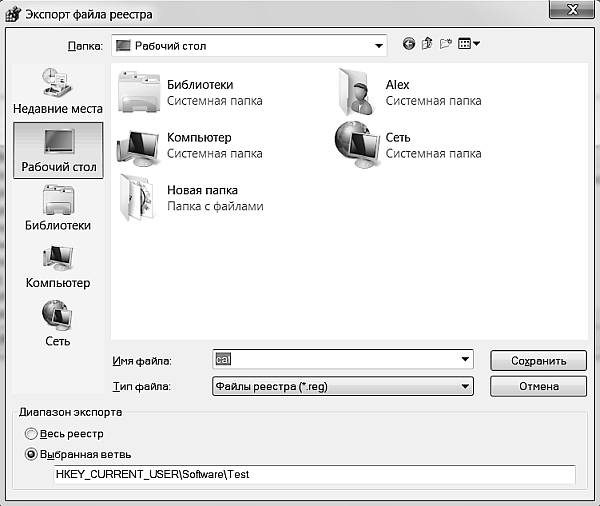 Выше, говоря о создании архивной копии реестра, мы уже затрагивали вопросы экспорта реестра целиком или его отдельных ветвей. Сейчас пришло время попрактиковаться в этом занятии, используя наш сквозной пример.