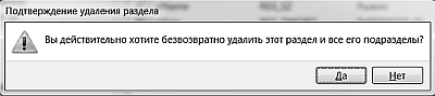 Удалите созданный ранее раздел Test. Для этого выделите его, нажмите клавишу Delete на клавиатуре или выполните команду контекстного меню раздела Правка ► Удалить. Прежде чем удалить раздел, система запросит у вас подтверждение операции (рис. 1.15).