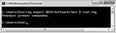 Рис. 1.20. Экспорт настроек реестра при помощи командной строки