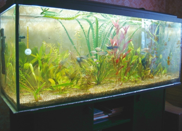 совершенно ровная поверхность стола. Даже при незначительной ее кривизне нижнее стекло аквариума рано или поздно под давлением своего наполнения треснет, и вода окажется