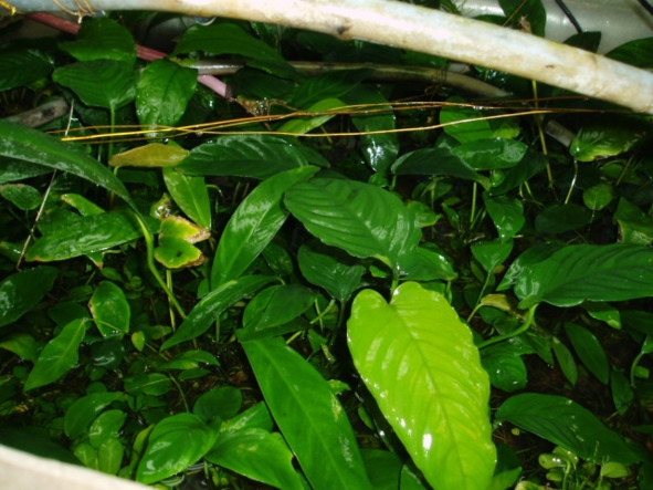 Примерно таких же (болотных) условий можно достичь в аквариуме если понизить уровень до половины или до одной трети. Плотно накрыть аквариум стеклом, чтобы сохранялась влажность, как в тропическом лесу. Для повышения влажности можно задействовать донный подогрев или дождевальное устройство.