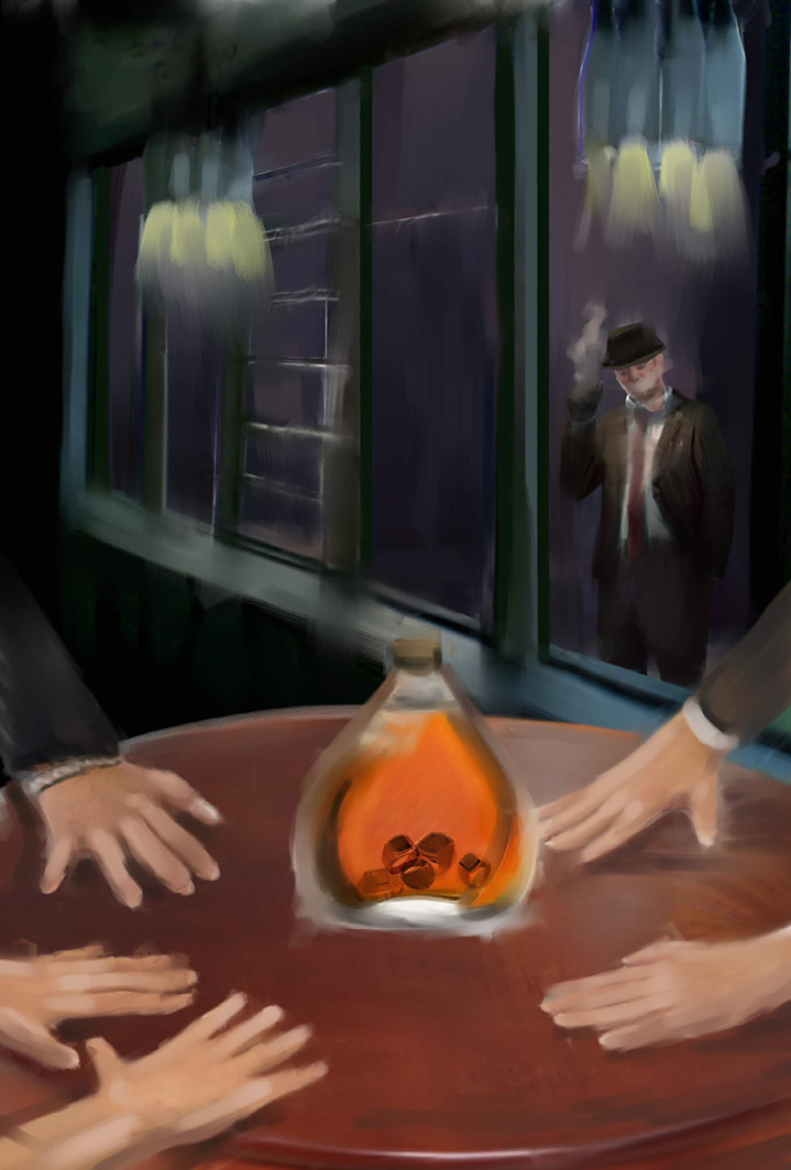 Илья подозвал официанта, и тот поднес к их столику приготовленную заранее бутылку Pierre Croizet La Carafe XO с широким горлышком. Официант вынул притертую стеклянную пробку, и Илья бросил в коньяк свой перстень.