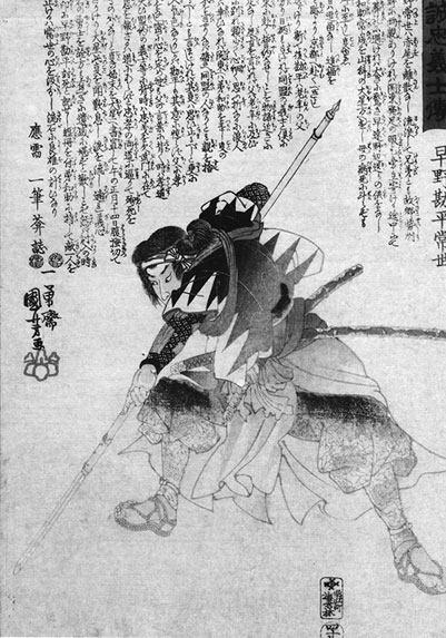 Утагава Куниёси. Воин в соломенном дождевике. 1848