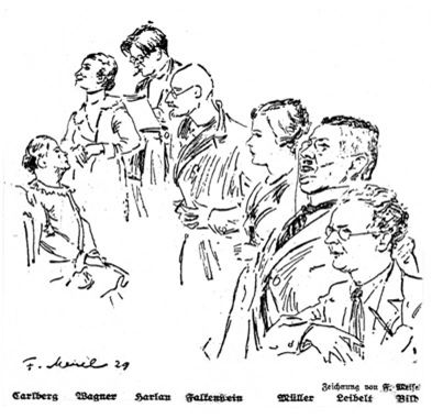 Pressezeichnung zu Hans Meisels „Störungen“ am Staatstheater, 1929.