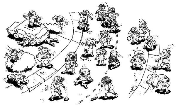 – Чувак, ты слушаешь? Если вас укусят, вы заразитесь и станете ходячими мертвецами. Зомбарям только того и нужно. Конечно, еще вас могут просто сожрать целиком. К счастью, зомби весьма медлительны, так что убежать от них несложно, но…