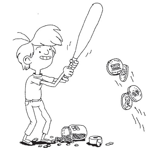 Зак вытащил из кармана штанов складной нож и раскрыл. Сев на кровать, он зажал коленями один конец биты, вогнал металлическое лезвие в пластмассу и стал поспешно вырезать в основании отверстие. Затем взял набитую монетами копилку в виде гигантской бутылки колы и высыпал все оттуда в одну большую кучу на кровати. Горсть за горстью он ссыпал мелочь в полую биту, пока она до краев не наполнилась старыми монетками, поросшими противной зеленой плесенью.
