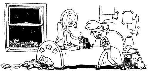 Зак пошарил под кроватью и вынул игрушечный пистолет. В другом конце комнаты Мэдисон сидела на вращающемся стуле и смотрелась в складное зеркальце.