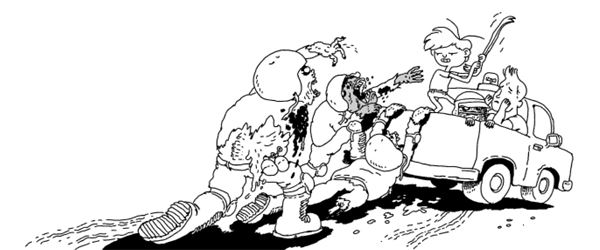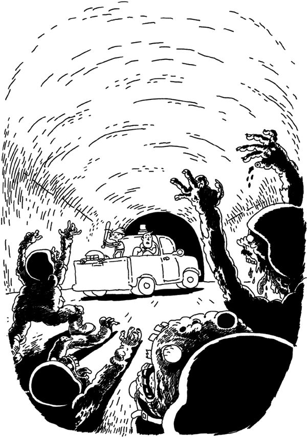 Тут же еще двое зомбосолдат вскарабкались по бортам и ввалились в кузов к Заку, НеГрегу и Зоуи-зомби. Искривленные конечности топорщились в разные стороны под немыслимыми углами, точно у полураздавленых пауков-сенокосцев. Пикап на полном газу рванул вперед.