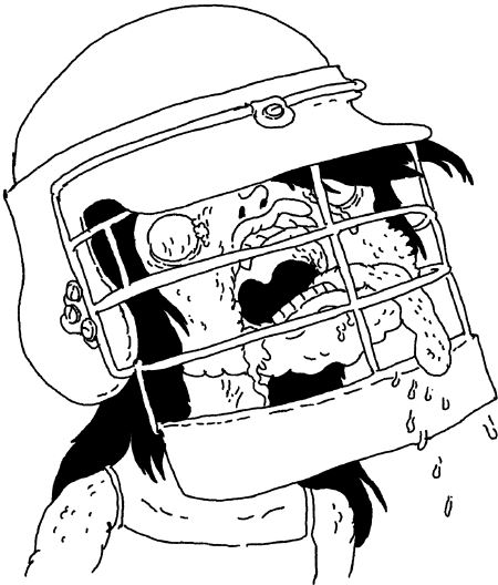 Из-под маски для лакросса [5] Зоуи-зомби испустила дикий рык. Ее лицо было творожного цвета, и лоскуты кожи смотрелись на нем как чипсы из тортильи. Из уголка рта стекала сливочно-бежевая капля, похожая на ириску-тянучку. Желудок Зака заурчал. А он, оказывается, голоднее, чем думал.