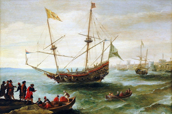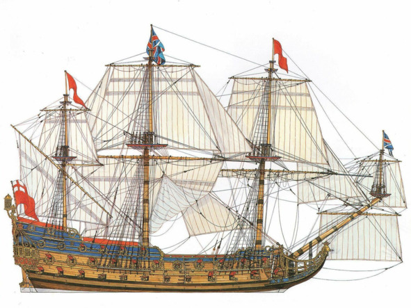 «Резолюшн» – флагманский 70-пушечный линейный корабль адмирала Томаса Эллина. Год постройки 1667, водоизмещение 900 тонн, длина 45 м, ширина 11,3 м, высота от верхней палубы до днища 4,8 м