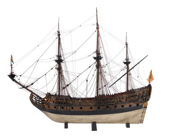 Модель фрегата «Мэри Роуз». Год постройки 1654, водоизмещение 560 тонн, длина 30,5 м, ширина 9,7 м, высота от верхней палубы до днища 4,0 м. Вооружение при постройке – 40 орудий, в 1669 году увеличено до 48 орудий.