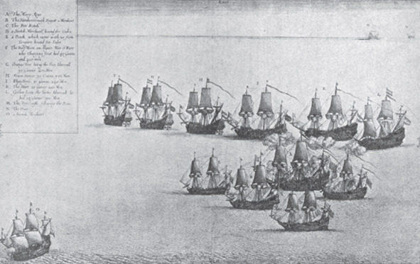 Но подготовка заняла больше времени, чем ожидалось. В первые дни марта Холмс с четырьмя или пятью кораблями – единственными, которые присоединились к нему – находился у острова Уайт в ожидании, когда Эдвард Спрэгг вошел в Ла-Манш по пути домой из Средиземноморья. Холмс сделал осторожный запрос в отношении конвоя из Смирны. Спрэгг сказал, что он обогнал караван несколько дней назад, и значит, он должен быть недалеко позади него. В этих обстоятельствах очевидной обязанностью Холмса было передать инструкции Спрэггу или, по крайней мере, каким-то образом обеспечить сотрудничество Спрэгга, зная, что его собственная сила все еще слишком слаба для этого дела. Но Холмс хотел присвоить всю славу и выгоду себе и позволил своему коллеге продолжить путь домой в неведении о предстоящей атаке.