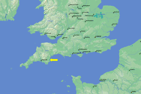 Бухта Торбей (желтая стрелка)