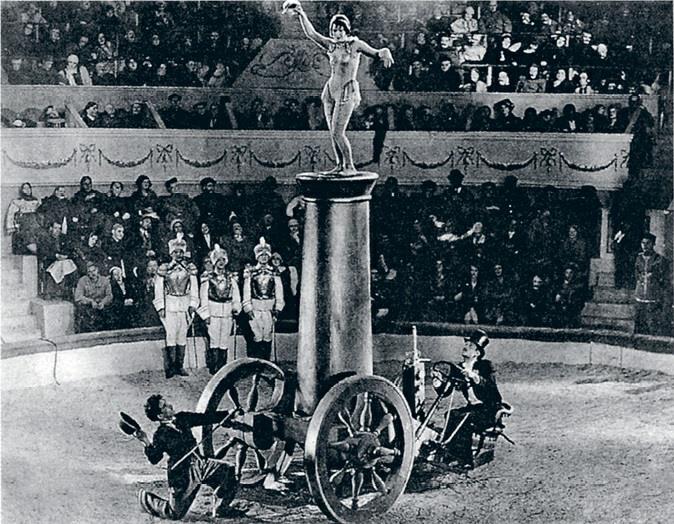 Илл. 13. Звездный час русского цирка. «Красавицу» водрузили на пушку, и теперь она танцует на дуле