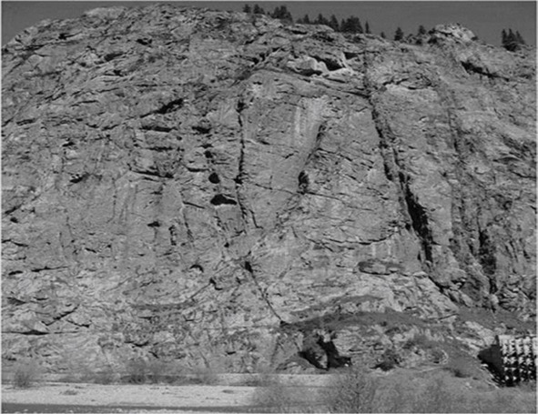 Отвесные скалы, ограждавшие небольшую полоску пляжа, на южной стороне озера Иссык.