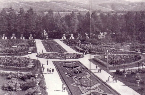 От круглого газона, 10 минут ходьбы вправо, находилась та скамейка. Алма-Ата. 1963 год. Парк Культуры и отдыха имени Горького.