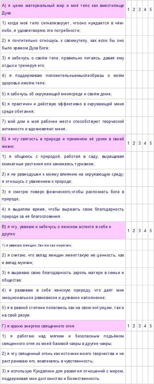 г) Я сохраняю энергию священного огня. Я принимаю решение улучшить ситуацию в этом направлении, выполняя следующее: