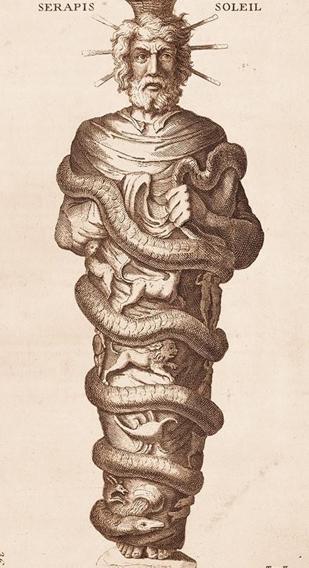 Существует греко-египетский Бог по имени Серапис, который обрёл известность в III веке до н. э., чья личность может быть связана с вознесённым владыкой Сераписом. Поклонение ему распространилось по всему Египту и позже в Малой Азии и даже Италии. В течение греко-римского периода в честь Сераписа было воздвигнуто сорок два храма. Царь Птолемей I избрал его официальным Богом Египта, возведя ему храм в Александрии. И всё же Серапис – один из самых таинственных египетских богов, страна его происхождения неизвестна, а учёные предлагают бесчисленные варианты перевода его имени. Тайны его вероучения, хранимые жрецами его храма, погребены вместе с другими тайнами древнего Египта.