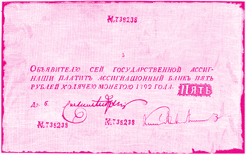 Пятирублевый ассигнационный билет екатерининского времени