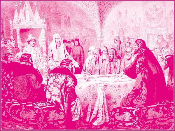 Латинобоязнь. Кроме собственного образа действий Никон располагал еще двумя вспомогательными средствами для борьбы со староверческим упрямством, которые при данной им делу постановке столь же удачно способствовали успехам староверия. Во-первых, ближайшими сотрудниками Никона и проводниками его церковных нововведений были южнорусские ученые. О них знали в Москве, что они тесно соприкасались с польским католическим миром; или такие греки, как помянутый Арсений, бродяга-перекрест, бывший католик и, по слухам, даже басурман, доверенный книжный справщик Никона, вывезенный им из Соловецкого исправительного подначала, «ссыльный чернец темных римских отступлений», как о нем тогда отзывались. Притом введение церковных новшеств сопровождалось резкими попреками со стороны приезжих малороссов и греков, направленными против великороссов.