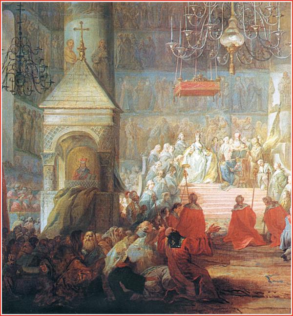 ВЕНЧАНИЕ НА ЦАРСТВО ЦАРЯ МИХАИЛА ФЕДОРОВИЧА В УСПЕНСКОМ СОБОРЕ.