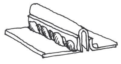 Таким швом удобно соединять детали с фигурным обрезом, выполненным, например, ножницами «зигзаг», а также настрачивать тесьму или отделочные полоски кожи, которые могут быть в цвет основной детали или, наоборот, контрастными.