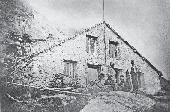 Die Hütte ist in zwei Kammern aufgeteilt. Eine für die «Herrschaften», eine für die Bergführer. Als Schlafunterlage steht ein Haufen Heu zur Verfügung. Neben einer kleinen Grube, die als Küche dient, stehen Tisch und Bänke. Der Bursche hat schon vor ihrer Ankunft mit dem mitgetragenen Holz angefeuert. Es gibt kaltes Schaffleisch, Brot und Käse, dazu heissen Milchkaffee. «Danach verbrachten wir den Abend angenehm mit Wein und einer Pfeife», so Hinchliff. Gegen neun Uhr wickeln sie sich in die Decken, liegen «wie Mumien nebeneinander» und hätten sehr komfortabel genächtigt, «wären wir Menschen die einzigen Lebewesen in den Heubetten gewesen». Hinchliff versucht, die Flöhe gelassen zu nehmen und kann «recht gut schlafen», bis ihn das Geräusch der Türe aufweckt. «Als ich aufschaute, sah ich die dunkle Kontur Melchiors vor mir. Er sagte, es sei halb vier und Zeit für das Frühstück. Also standen wir auf, assen wieder Schaffleisch und tranken Kaffee. Der Deutsche sass ebenfalls mit uns am Tisch.» Der Mut hat ihn verlassen. «Ohne um den heissen Brei zu reden, sagte er, die Expedition sei nichts für ihn, er gehe mit dem Träger zurück. Wir wollten ihn nicht davon abhalten. Als wir mit unseren zwei Führern gegen fünf Uhr rechts von der Hütte wegmarschierten, gingen er und der Bursche hinab zur Grimsel.»
