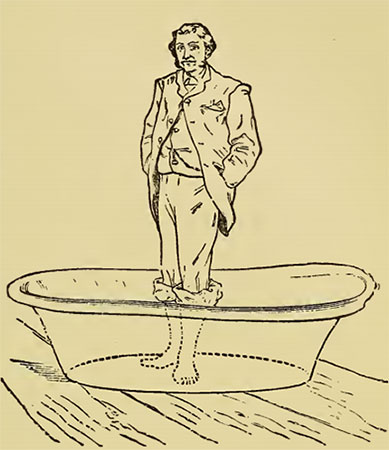 6. Чтобы закалить преимущественно конечности: руки и ноги, годится следующий способ. Погружают ноги до или выше колен в холодную воду не больше, чем на 1 минуту. Обувши ноги, обнажают руки до плеч и погружают их тоже в холодную воду на 1 мин. Гораздо лучше, впрочем, делать и то, и другое одновременно. У кого есть большая ванна, тот может легко это сделать. Можно еще поставить ноги в какой-нибудь сосуд, стоящий на полу, а обнажённые руки опустить в ведро, поставленное на стуле.