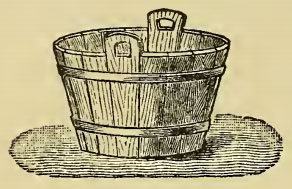 1. Головная паровая ваннаУпотребление головной паровой ванны требует нескольких незначительных приспособлений: довольно глубокая, неширокая деревянная посудина (см. рис. 7) с ушками, на которые можно было бы удобно опираться руками, плотно приходящаяся к ней крышка, два стула и достаточно большое шерстяное одеяло для прикрытия пациента. Более высокий стул служит для сидения, пониже – как подставка для посуды (ушата, лоханки, ведра). Когда все это приготовлено, наполняют посуду до 3/4 ее кипятком, и прикрывают крышкой и мокрым холстом, чтобы выходило как можно меньше пару.