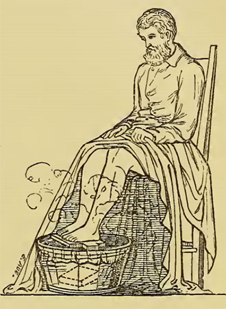 У выздоравливающего от тифа или какой-нибудь другой тяжелой болезни есть еще значительные застои крови на поверхности головы или внутри ее. Паровые ванны в таком случае очень полезны. Следует применять при этом умеренные и более легкие паровые ванны, головные или ножные, потому что в данном случае мы имеем дело с малокровным и ослабевшим индивидуумом. Чтобы потушить спичку, мне не нужен кузнечный мех, достаточно для этого и легкого дыхания. Это же относится ко всем малокровным лицам. Согревающие паровые ванны приятны им, слишком же сильные паровые ванны отнимают только кровь, тепло и жизнь. Могут ли здоровые, полные люди перенести много паровых ванн, могут ли много потеть? Эти люди менее всего, потому что они малокровны. Именно им я редко назначаю паровые ванны, а предпочитаю обертывание, чтобы усилить транспирацию. Там же, где транспирация в порядке, там усиленное потение не нужно. Пациент жалуется на сильную боль в ногах и просит паровых ванн для своих сухих истощенных ног. Как было бы глупо исполнить его просьбу! Здесь уж нечему испаряться и выделяться. Тут следует употреблять полуванны и частые обливания колен.