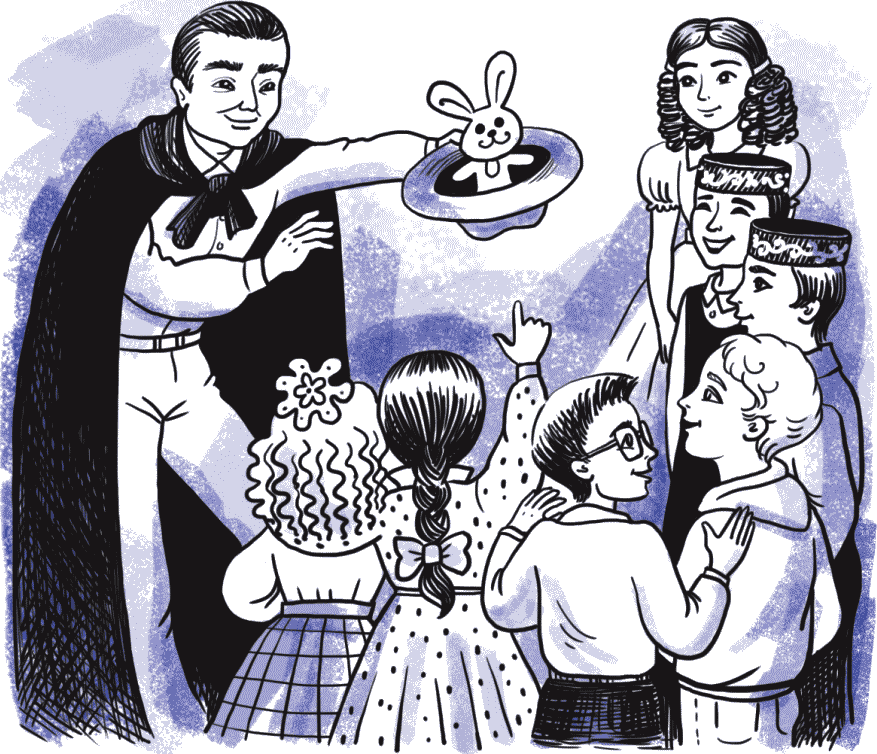На дне рождения оказалось очень здо́рово: весело и вкусно. Малькин отец показывал фокусы, Малька играла на дудочке, а два ее мелких, совсем одинаковых брата танцевали какой-то татарский танец. Потом все смотрели мультики по видику. А потом был ужин. Серьезная и молчаливая Малькина мать угощала всех незнакомыми кушаньями, из которых Витику запомнились замечательной вкусности мясо и хрустящие шарики в меду.