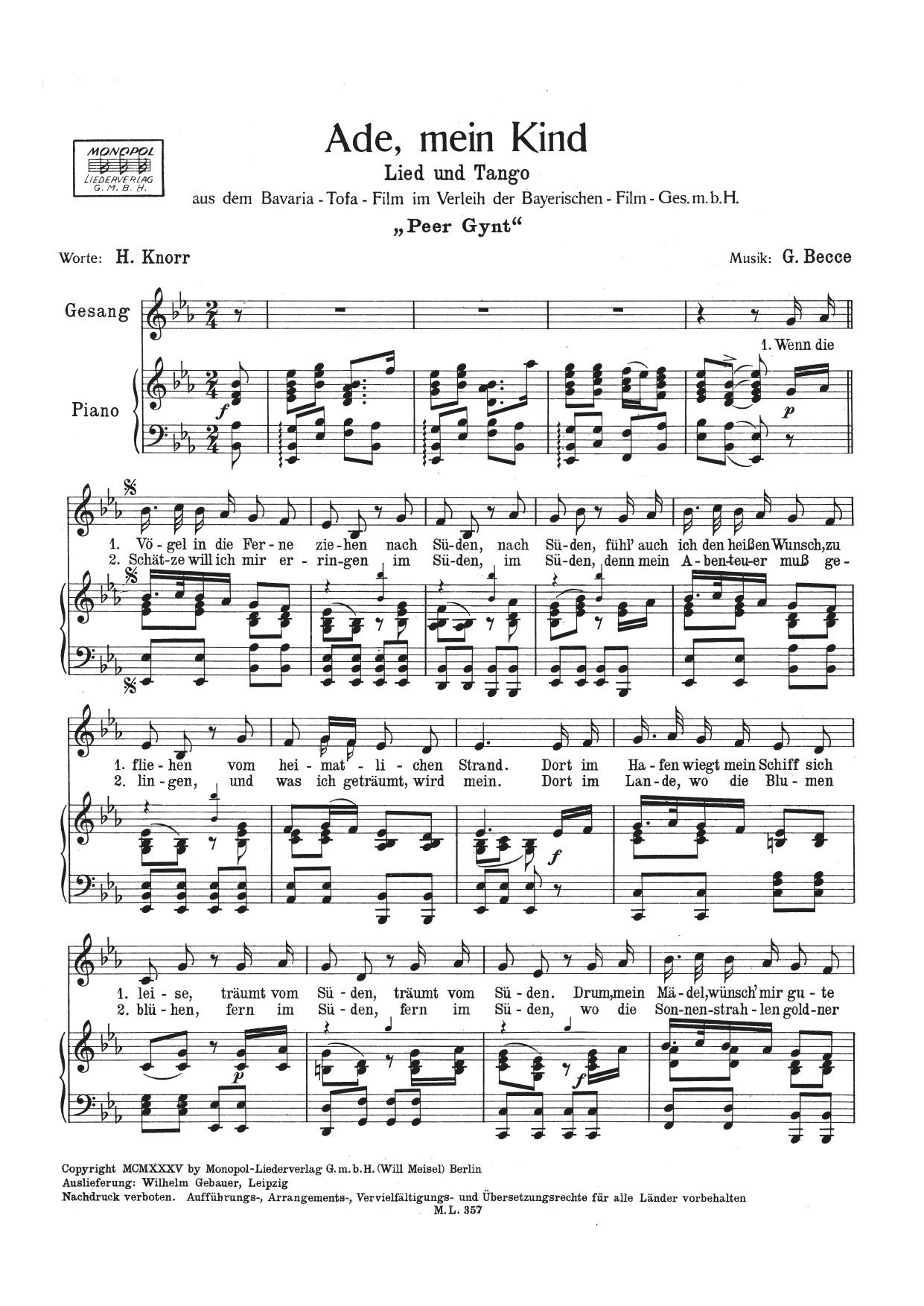 Ade, mein Kind