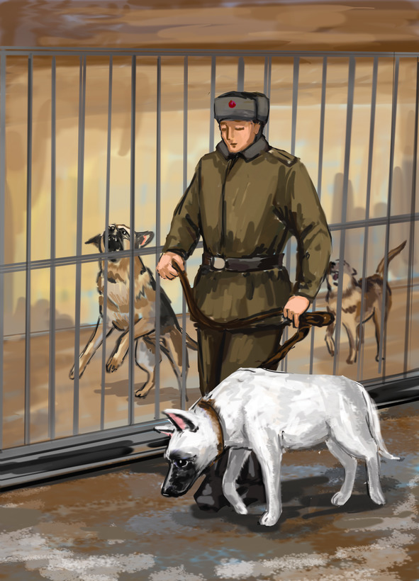 Машина привезла ее в незнакомое место, которое сильно пахло собаками и еще чем-то неизвестным для Пальмы. Незнакомый мужчина открыл борт машины и Пальма спрыгнула. Она шла вдоль вольеров с мужчиной в военной форме, на нее кидались собаки из других вольеров. Но она не обращала на них никакого внимания. Ей было все безразлично, казалось, что жизнь просто остановилась…