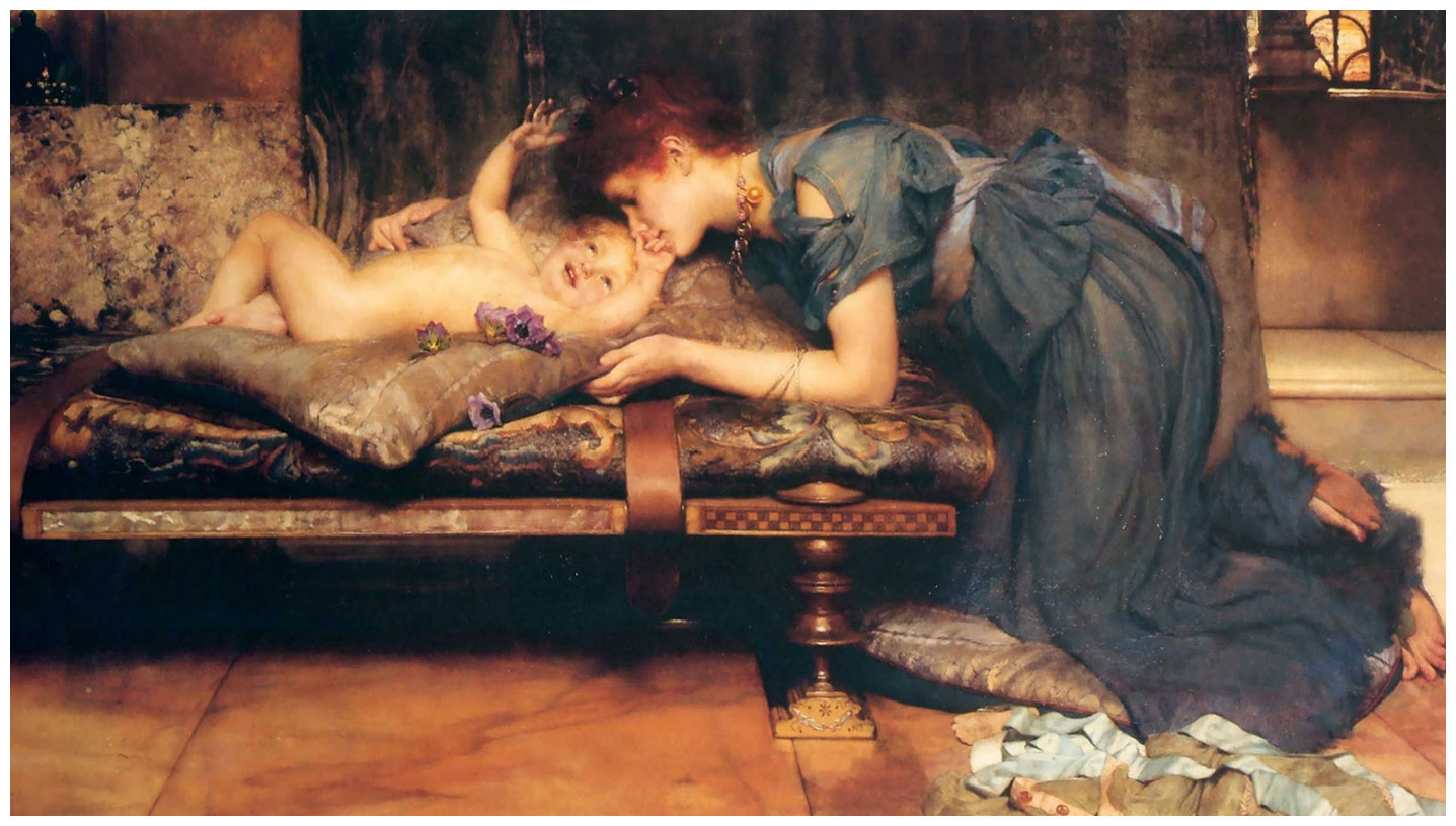 Повитуха принесла новорожденного, и Констанций взял его на руки; это означало, что отец признал ребенка своим. Младенец орал во все горло и беспорядочно размахивал руками и ногами. Повитуха забрала у Констанция ребенка и положила его рядом с матерью. Елена приложила сына к груди.