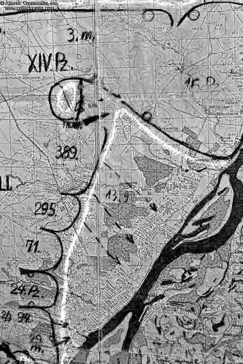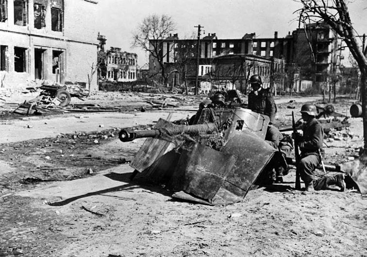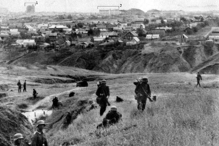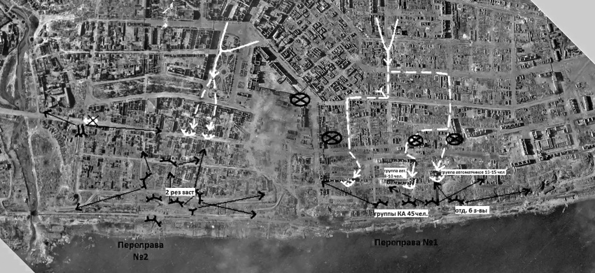 Основная ударная группа 71-й пехотной дивизии, 194-й пехотный полк и «штуги» 244-го дивизиона, по Киевской и Курской улицам продвигались в направлении многоэтажек на берегу – трех «домов специалистов» и здания Госбанка, с которых открывался прекрасный вид на переправы 62-й армии.