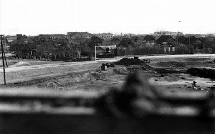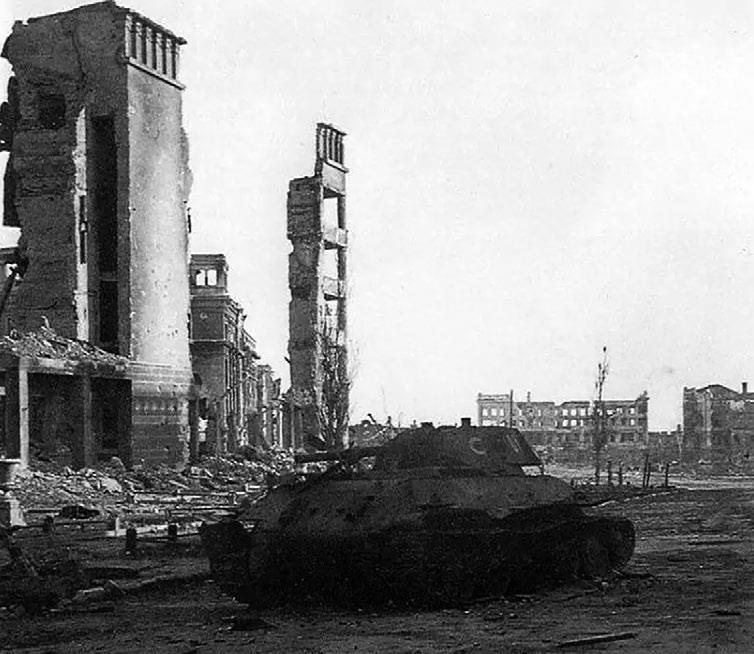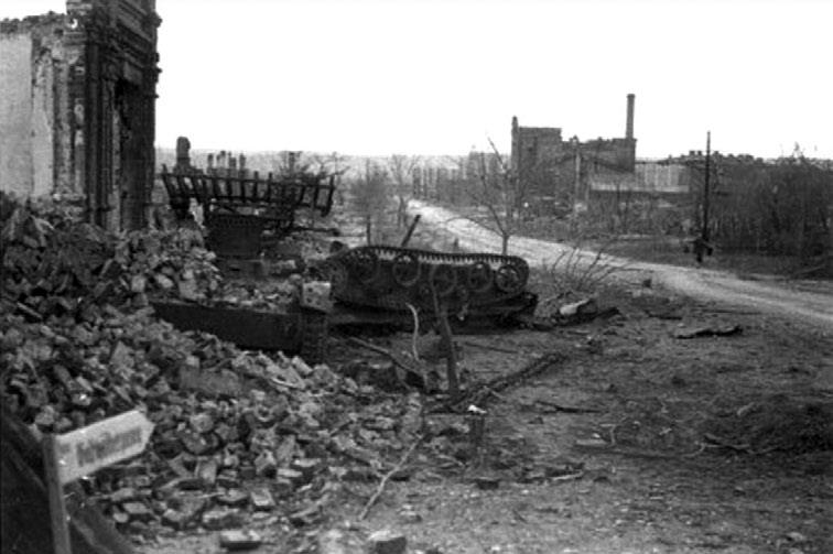 Одна из уничтоженных машин 6-й тбр, перекресток улиц Невской и Карской, т. н. «заполотновский» район. Фото из книги В. Вюстера «Артиллерист в Сталинграде»