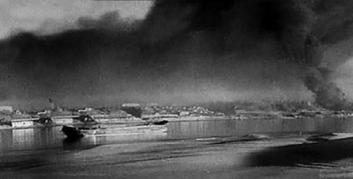В этот же день, 23 августа, 4-й воздушный флот начал акцию устрашения – массированную бомбардировку Сталинграда. Несколько дней подряд немцы методично пытались разрушить город и убивали гражданское население. Кирпичные «высотки» центра и заводских районов засыпали фугасными бомбами, многочисленные кварталы деревянных одноэтажек – «зажигалками». Горели роддом и госпиталь, не работал водопровод. Обезумевшие в огне и разрывах, женщины и дети рвались к берегу, блокируя и без того загруженные армейские переправы. Там, на берегу в центре города, образовалось огромное скопление раненых, беженцев и уцелевших жителей, которые пытались спастись от огня, переправившись через Волгу. Выше по течению из разрушенных баков Нефтесиндиката в Волгу текла горящая нефть, у пристаней горели и взрывались вагоны со снарядами от «катюш».