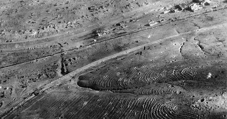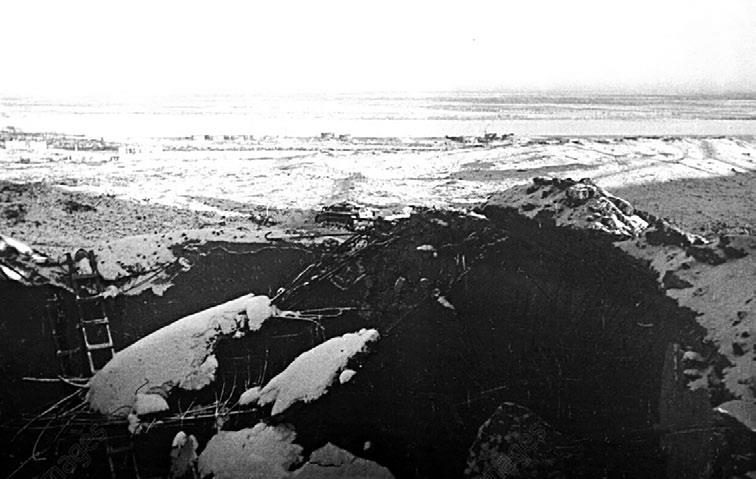 Остатки водонапорного бака на вершине Мамаева кургана, зима 1943-го. В центре снимка виден подбитый «штуг»