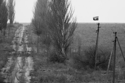 Красно-черный флаг «Правого сектора» (запрещен в России. – Авт.) виден издали – кто-то из очень увлеченных неонацистов забрался на опору ЛЭП у дороги, соединяющей Докучаевск и поселок Николаевка, и приладил там свой прапор. До недавнего времени территория между этими населенными пунктами была «серой зоной». И на этой дороге можно снимать фильм о постапокалипсисе – она поросла высокой травой и мхом, слева – побитая осколками лесопосадка, справа – кажущиеся безжизненными бескрайние поля. Хотя на самом деле там – позиции ВСУ. Поэтому расстояние на открытой местности преодолеваем со скоростью, которая при таком состоянии дорожного полотна близка к безумной.