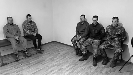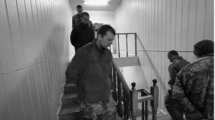 украинских военных из 53-й мотострелковой бригады зашли в комнату со сцепленными за спиной в замок руками. Ежедневно в ДНР добровольно покидают свои позиции и сдаются республиканским войскам десятки украинских военнослужащих. Эти решили закончить свою войну накануне.