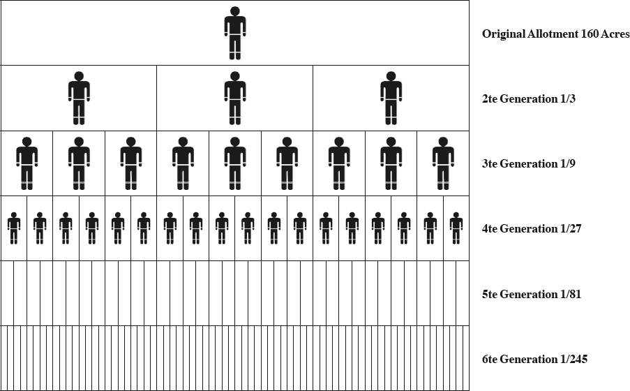 Deutlich werden die Folgen des Dawes Act, wenn man sich vorstellt, wie über Generationen die Ländereien aufgrund der Anzahl der Erben immer kleiner werden:
