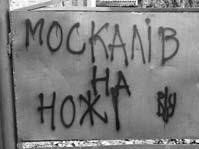 Надпись на заборе «Москалей на ножи». Здесь уже комментарии излишни.