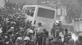 Около трех часов дня группа неонацистов возле стадиона «Динамо» сделала попытку штурма кордона охраны правительственного квартала с целью прорваться к Верховной Раде. Блокировать парламент со сцены призывал активист Автомайдана Сергей Коба. Руководитель партии «Батькивщина» Арсений Яценюк называл провокаторами тех, кто будет штурмовать административные здания и прибегать к насилию. Но оказалось, что политики уже не могут управлять митингующими. Самые рьяные радикалы не остановились перед милицейским заграждением, а начали оттаскивать автобус, чтобы расчистить себе дорогу. Несколько сотен радикалов вступили в силовое противостояние с милицией.