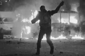К полуночи радикалы забросали бутылками с зажигательной смесью остальные автобусы и машины милиции. Занялось пламя. Протестующие также перевернули одну из припаркованных у стадиона «Динамо» легковых машин – ВАЗ-2110. Впоследствии автомобиль был сожжен. ВАЗ не был милицейским, он просто был мирно припаркован возле стадиона.