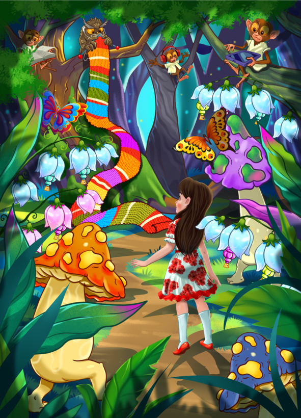 Девочка с интересом разглядывала многочисленные разноцветные шарфы, которые, словно ленты, свисали с веток и тянулись до самой земли. Совы же сидели очень высоко, и чтобы задать им вопрос, пришлось бы довольно громко кричать. Доминика посчитала, что нарушать тишину и тем самым тревожить этих милых рукодельниц было бы невежливо, и решила продолжить свой путь, уверенная в том, что ей обязательно еще кто-нибудь встретится.